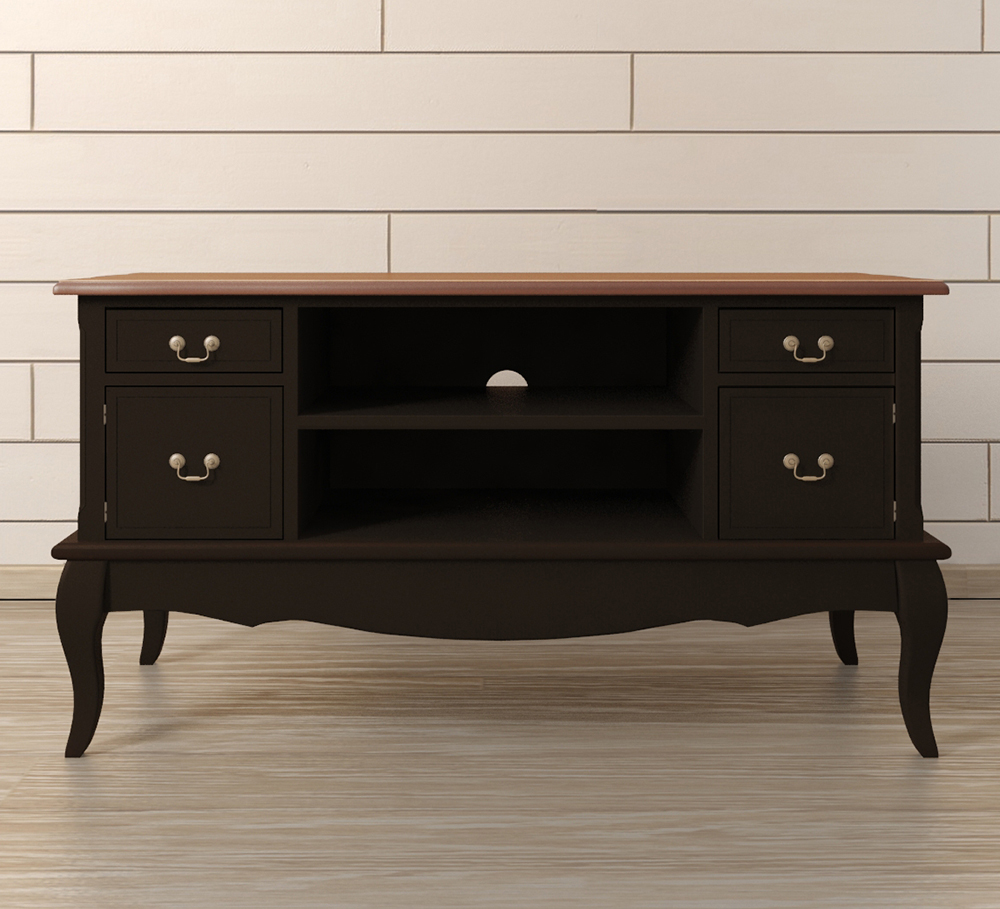 Цвет: Черный,Глубина, см: 50,Высота, см: 64,Ширина, см: 120,Материал: Массив березы,Массив ясеня,Вес: 35 кг,Размер: Большие,Стиль: Прованс,Особенности: Столешница - ясень,Форма: Прямоугольные,Цвет столешницы: Орех,Дизайн: Франция,Вид: Низкие,Ориентация: Горизонтальная,Назначение: Под TV,Количество ящиков: 4,Ножки: с гнутыми ножками,Опора: На ножках, Комод «Leontina Black» под TV черный