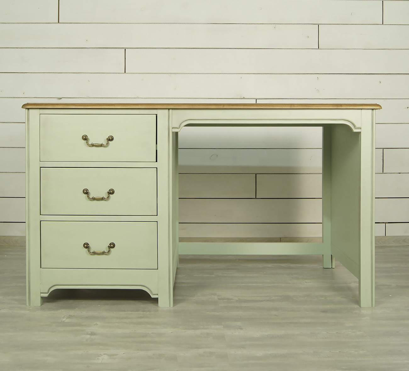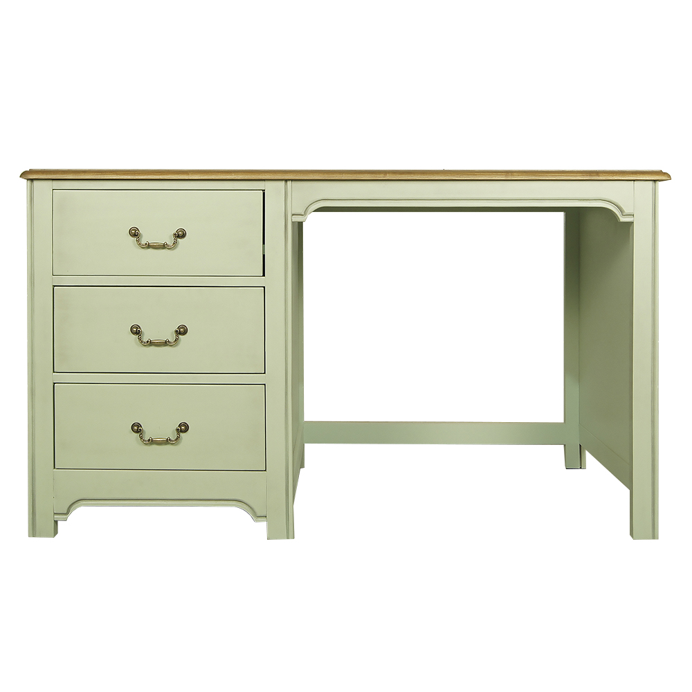 Цвет: Оливковый,Глубина, см: 70,Высота, см: 76,Ширина, см: 135,Материал: Массив березы,Размер: Большие,Стиль: Прованс,Особенности: Столешница - ясень,Форма: Прямоугольные,Цвет столешницы: Орех,Дизайн: Франция,Количество ящиков: 3,Ножки: Деревянные,Опора: На ножках,Тип стола: письменные, Рабочий стол с ящиками Olivia оливковый