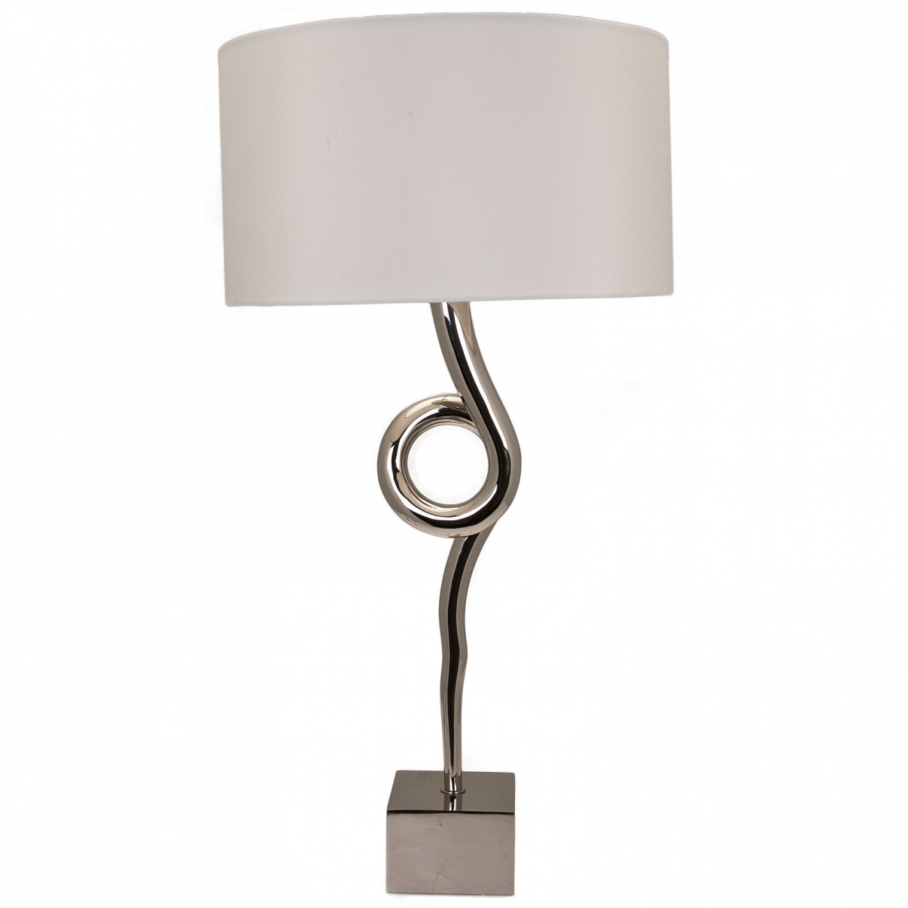 Arielle is a nickel lamp with a twist in the middle that always gets a second glance when situated on a lamp table or paired up on a console.